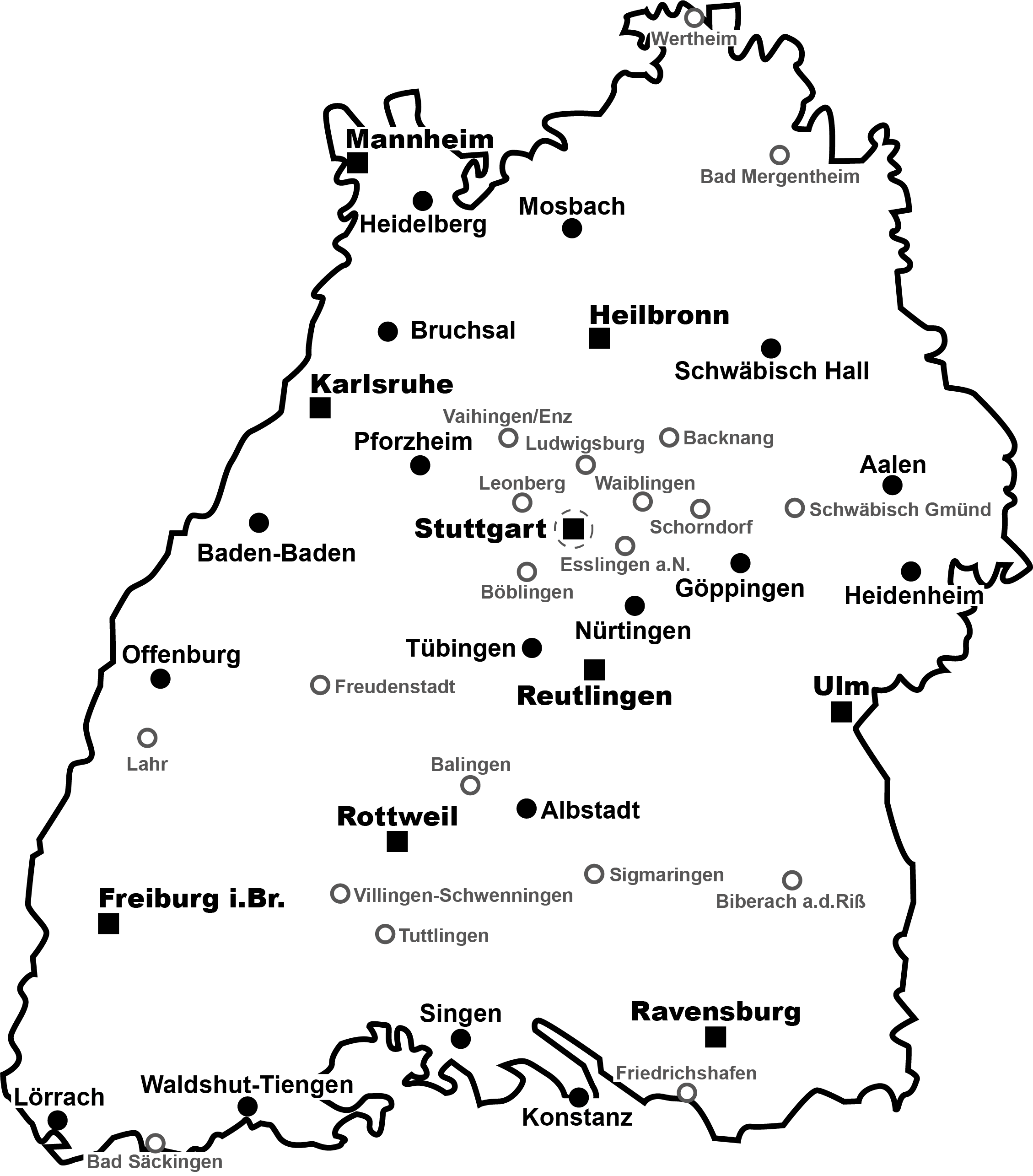 Neben der Geschäftszentrale verfügt die BGBW über landesweit neun örtliche Einrichtungen sowie 35 Außen- und Sprechstellen. So stellen wir eine möglichst wohnortnahe Betreuung sicher.
