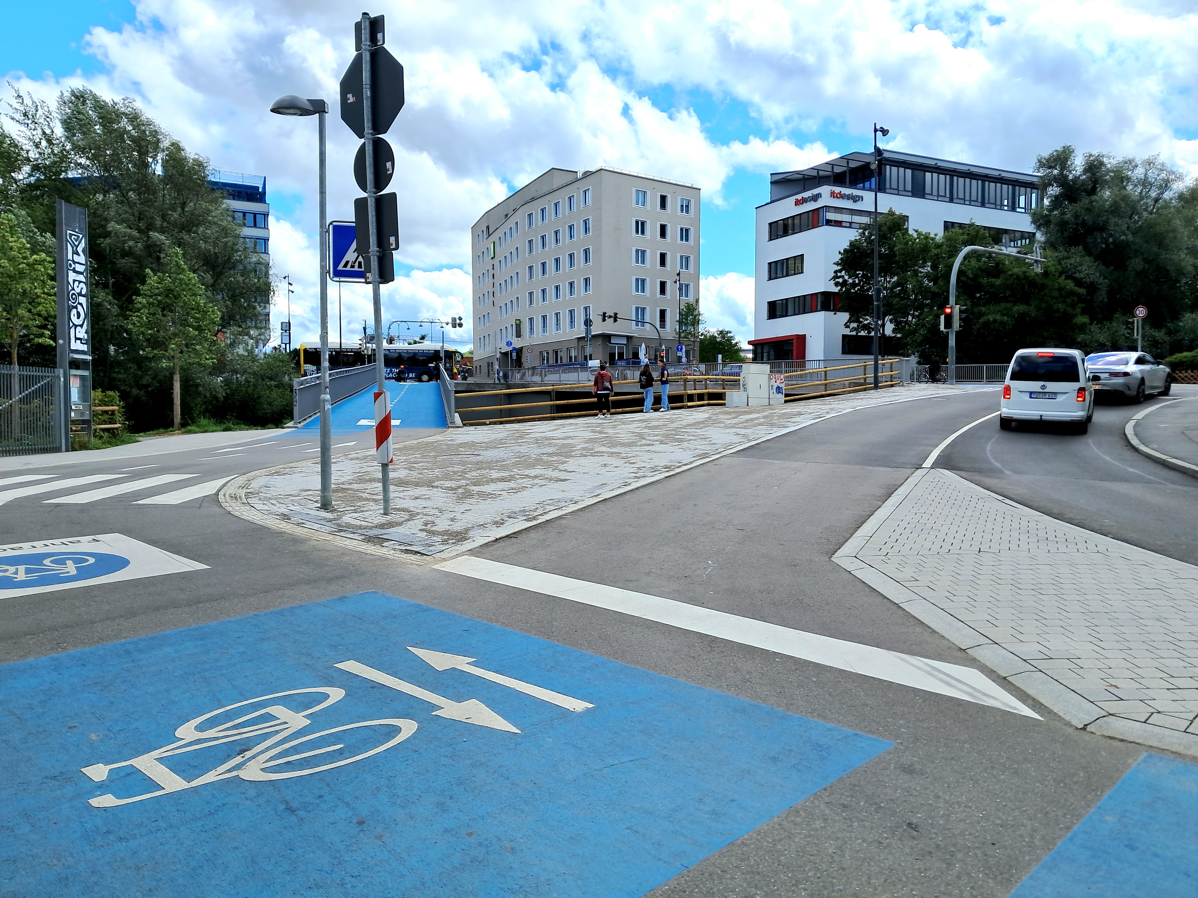 Besucher mit Fahrrad erreichen das Gericht aus Süden in direkter Linie auf Radwegen ab "Blauer Brücke" und Hauptbahnhof