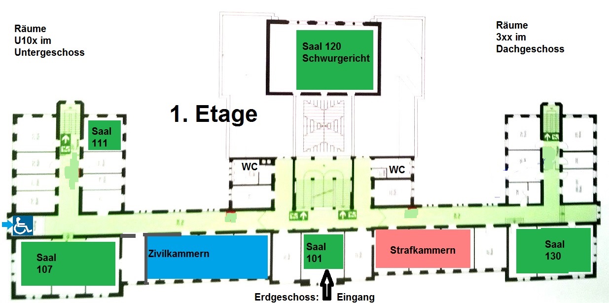 in Strafsachen finden in der Regel in den Sitzungssälen 120 (Schwurgerichtssaal gegenüber der Haupttreppe im Mittelteil des