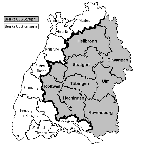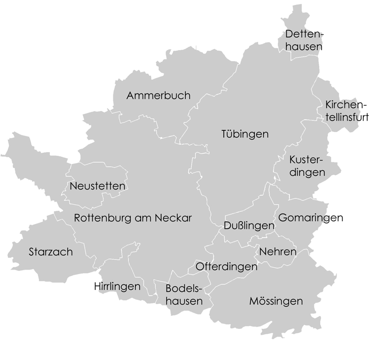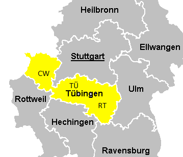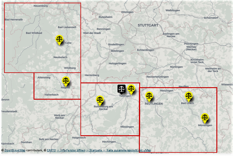 Das Landgericht Tübingen ist für die Landkreise Calw, Tübingen und Reutlingen zuständig. Im Landkreis Calw liegen die Amtsgerichte Calw und Nagold, im Landkreis Tübingen die Amtsgerichte Rottenburg und Tübingen und im Landkreis Reutlingen die Amtsgerichte Reutlingen, Bad Urach und Münsingen.